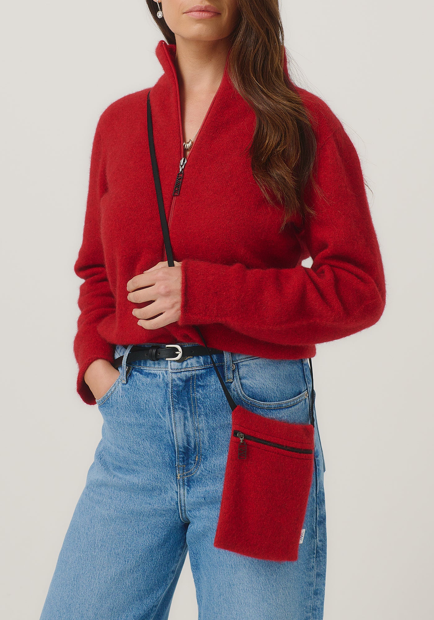 The cutest little knit bag, the Crossbody can be adjusted to a length that suits. A zip closure featuring the Merinomink zip pull allows you to safely stash valuables.