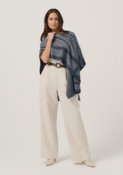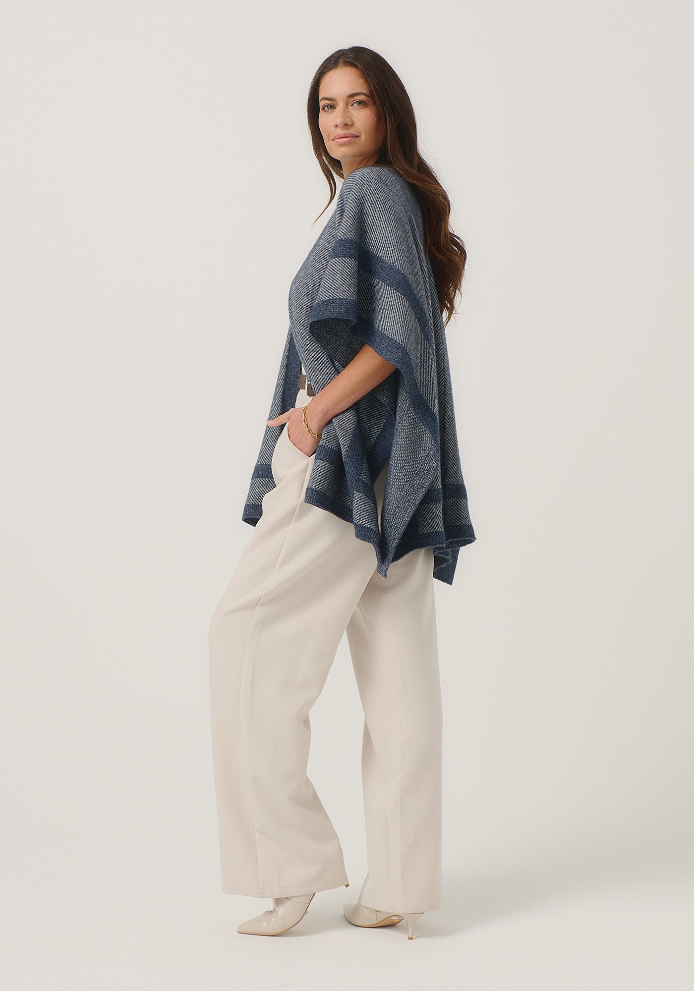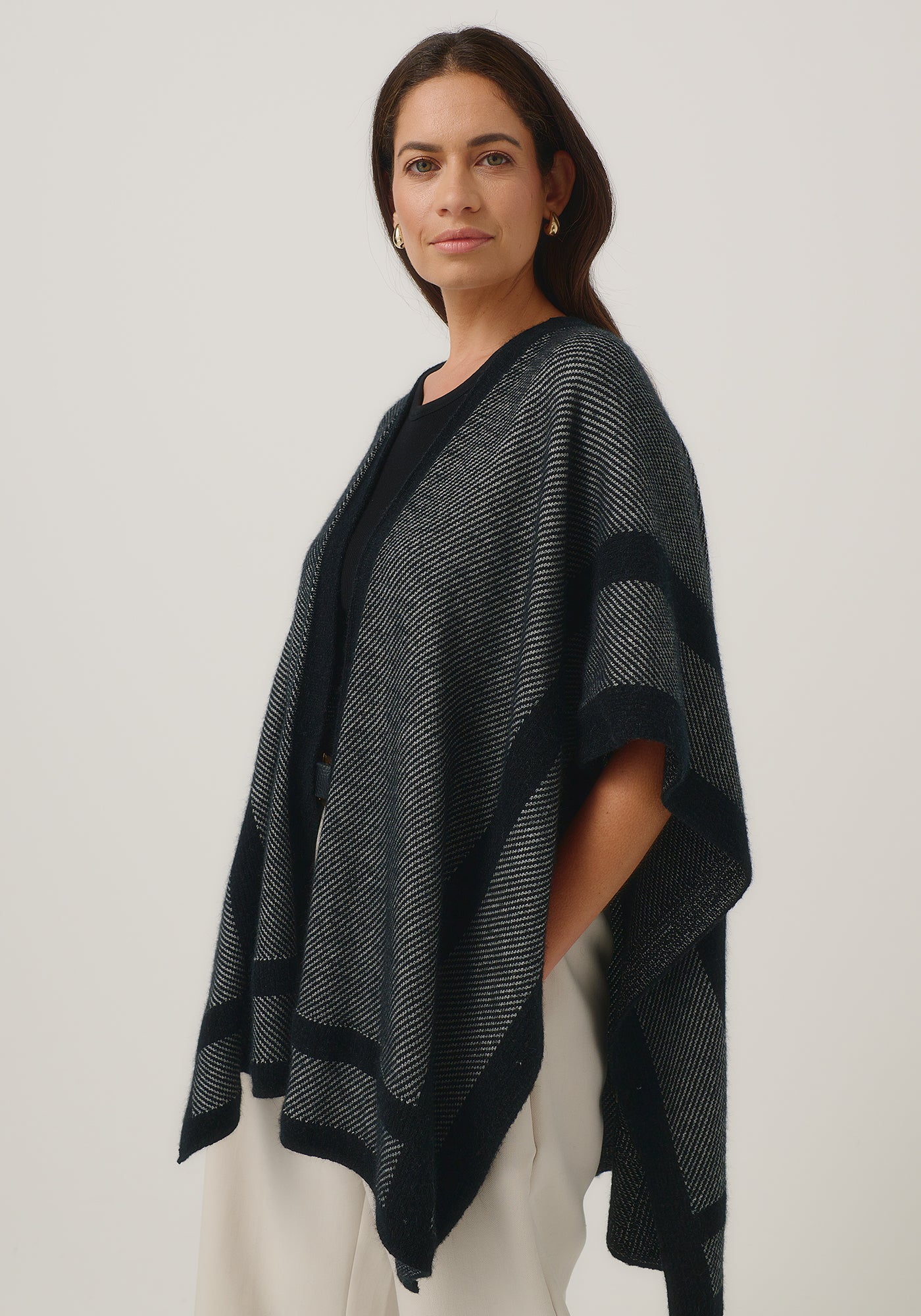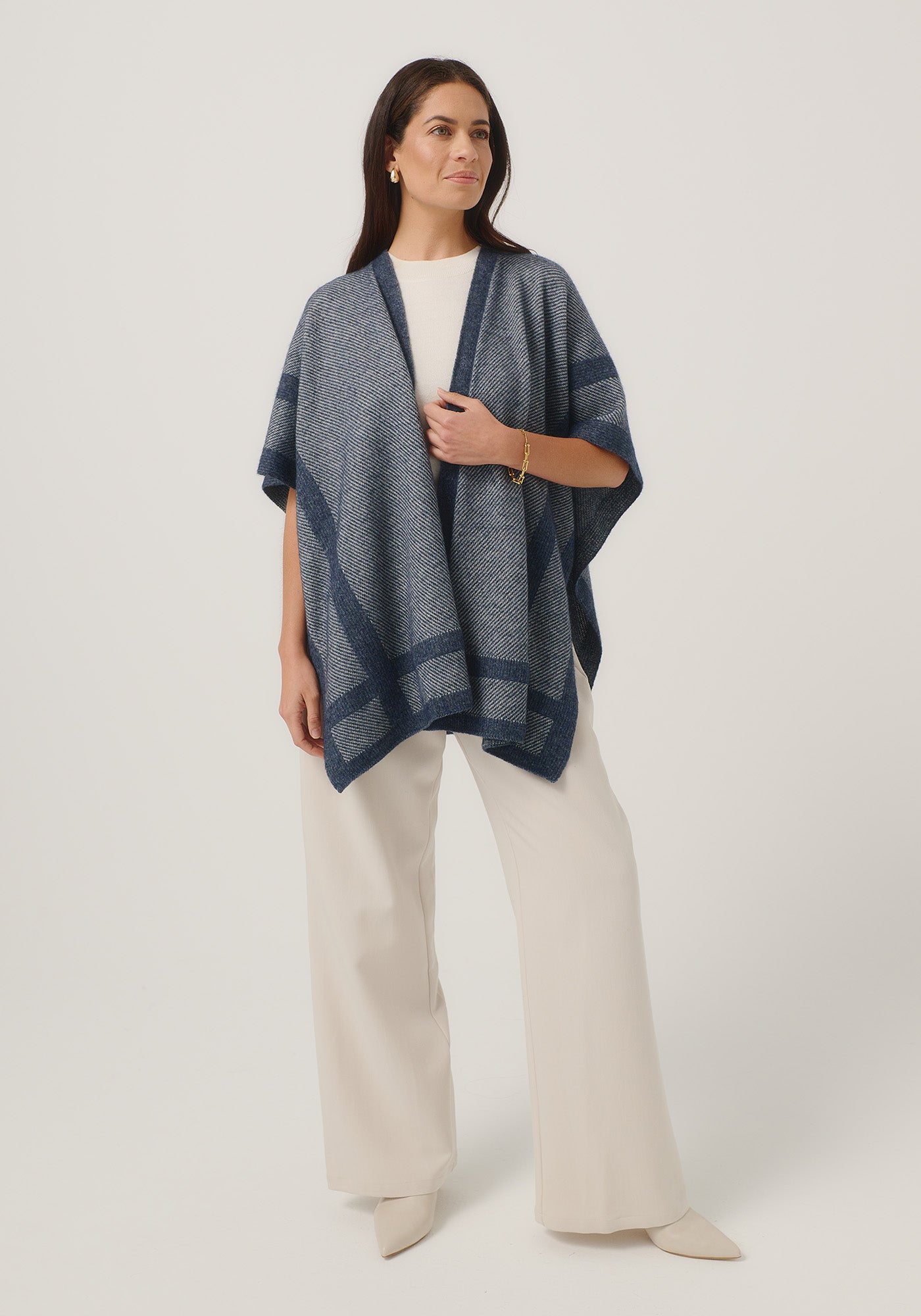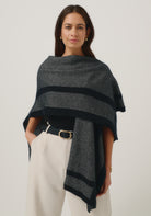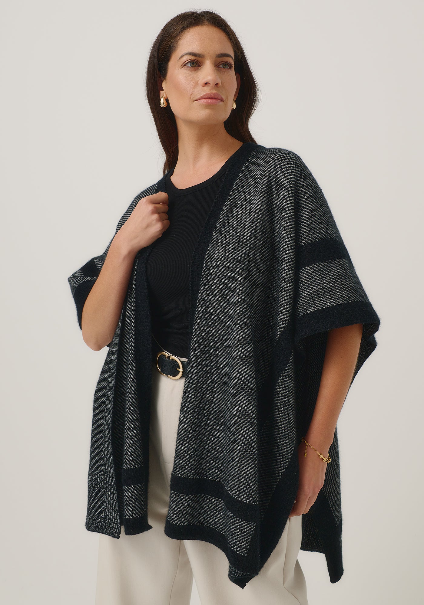 Wrap yourself up in style and sophistication. The Mari Wrap has form and function covered, with a beautiful textural knit and bold contrast panels. Easily styled in so many ways, this elegant piece is your perfect travel partner.