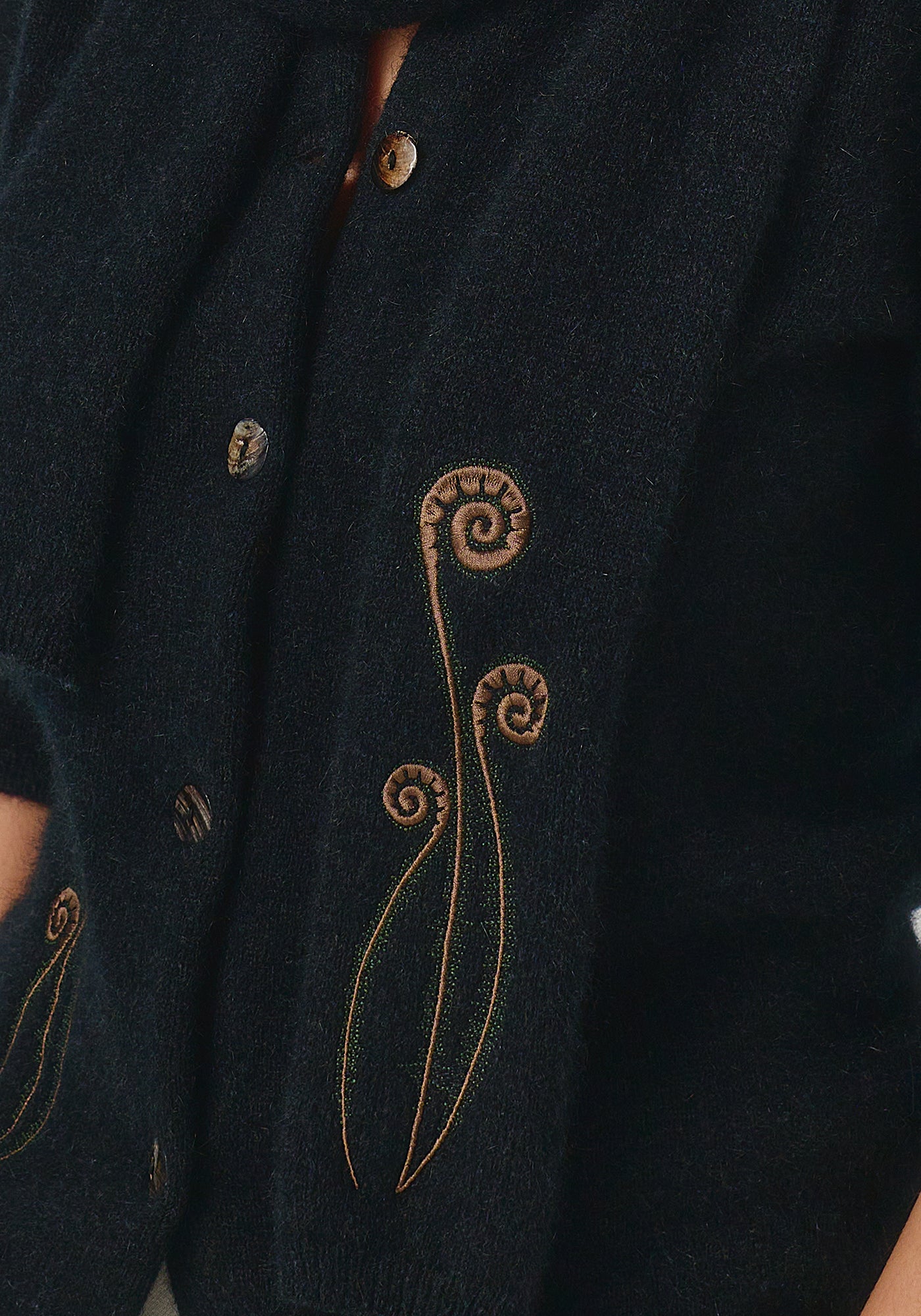 • Embroidered frond design detail