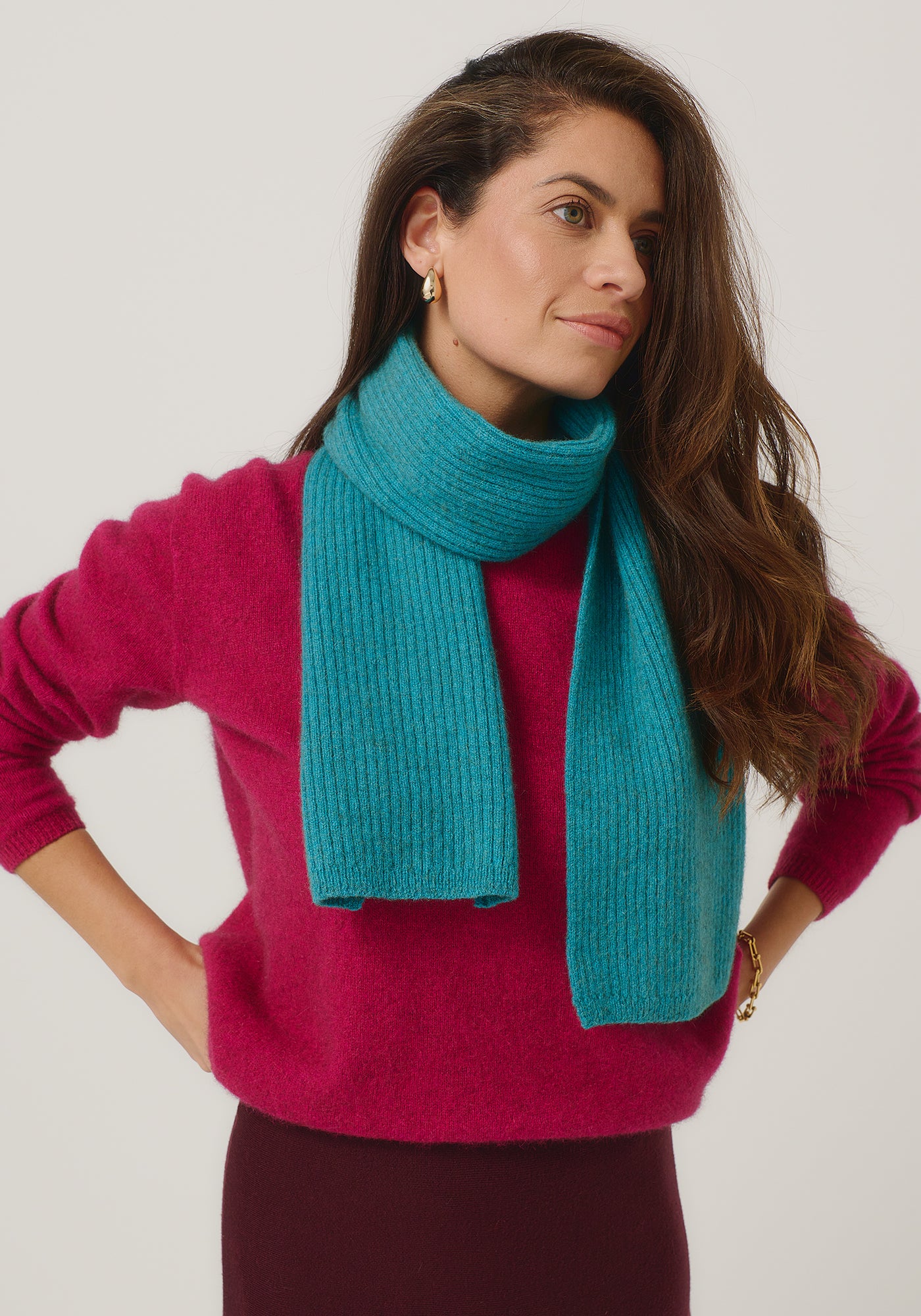 The classic rib scarf never goes out of style. Styled with coats and jackets it will elevate your outfit and keep you cosy.