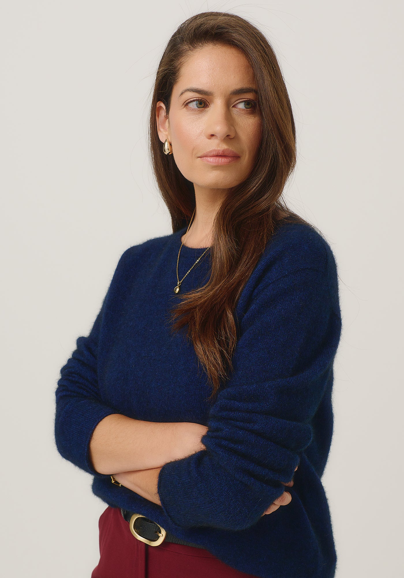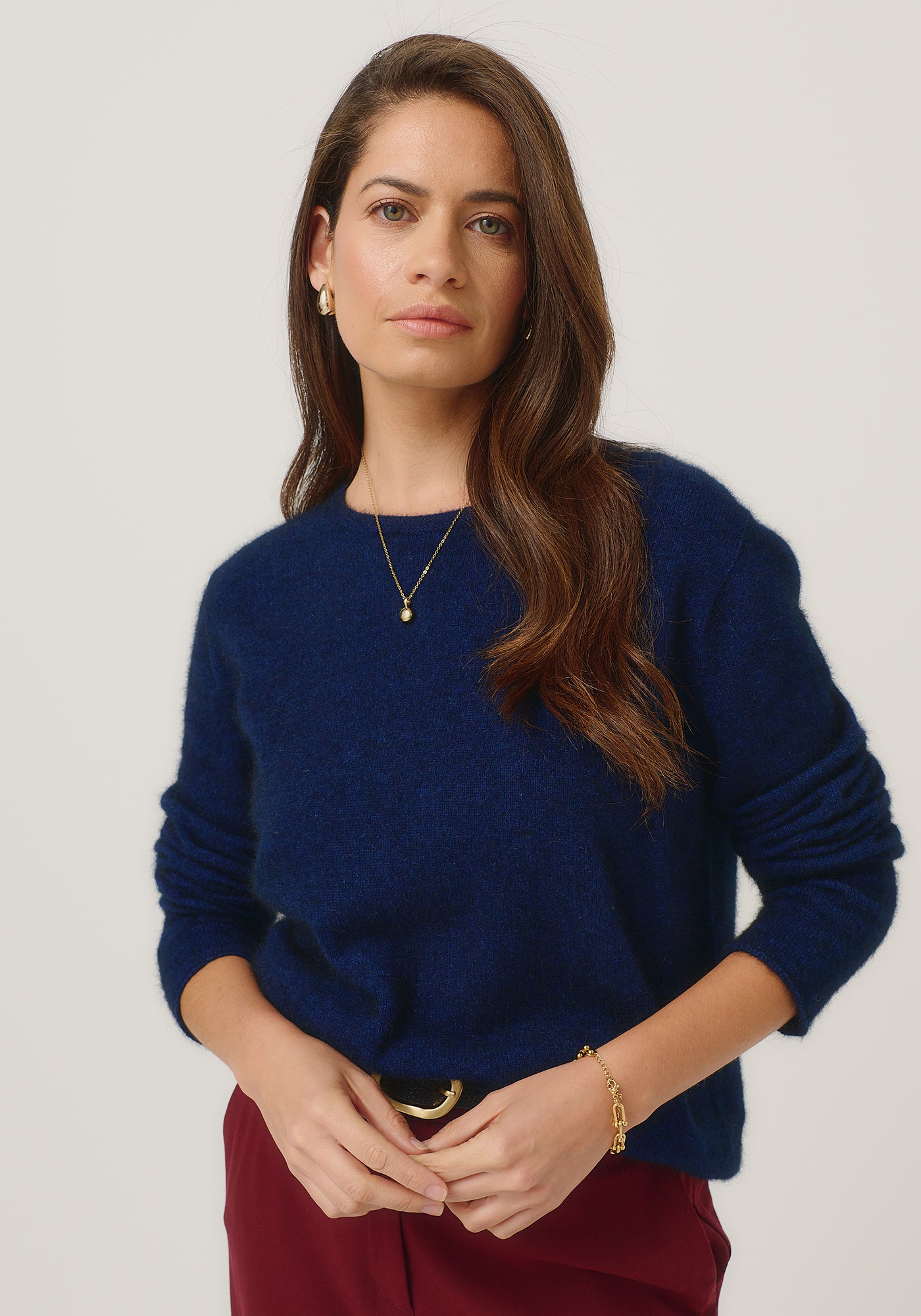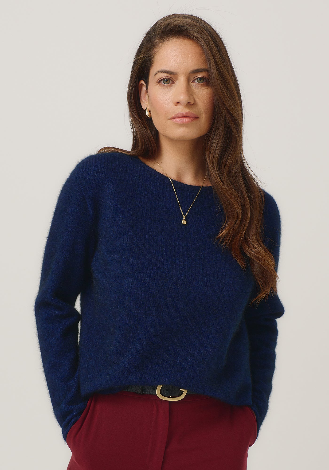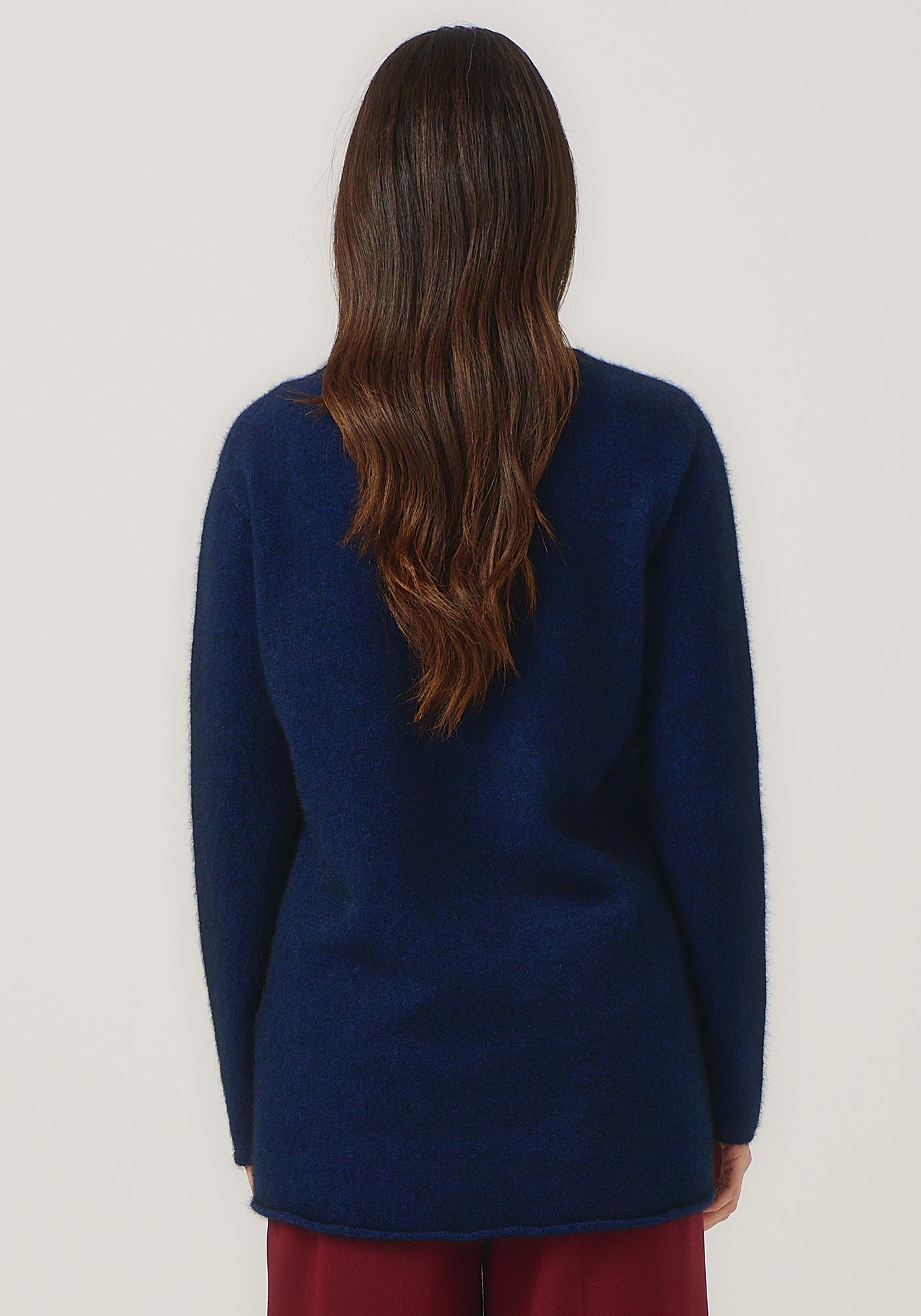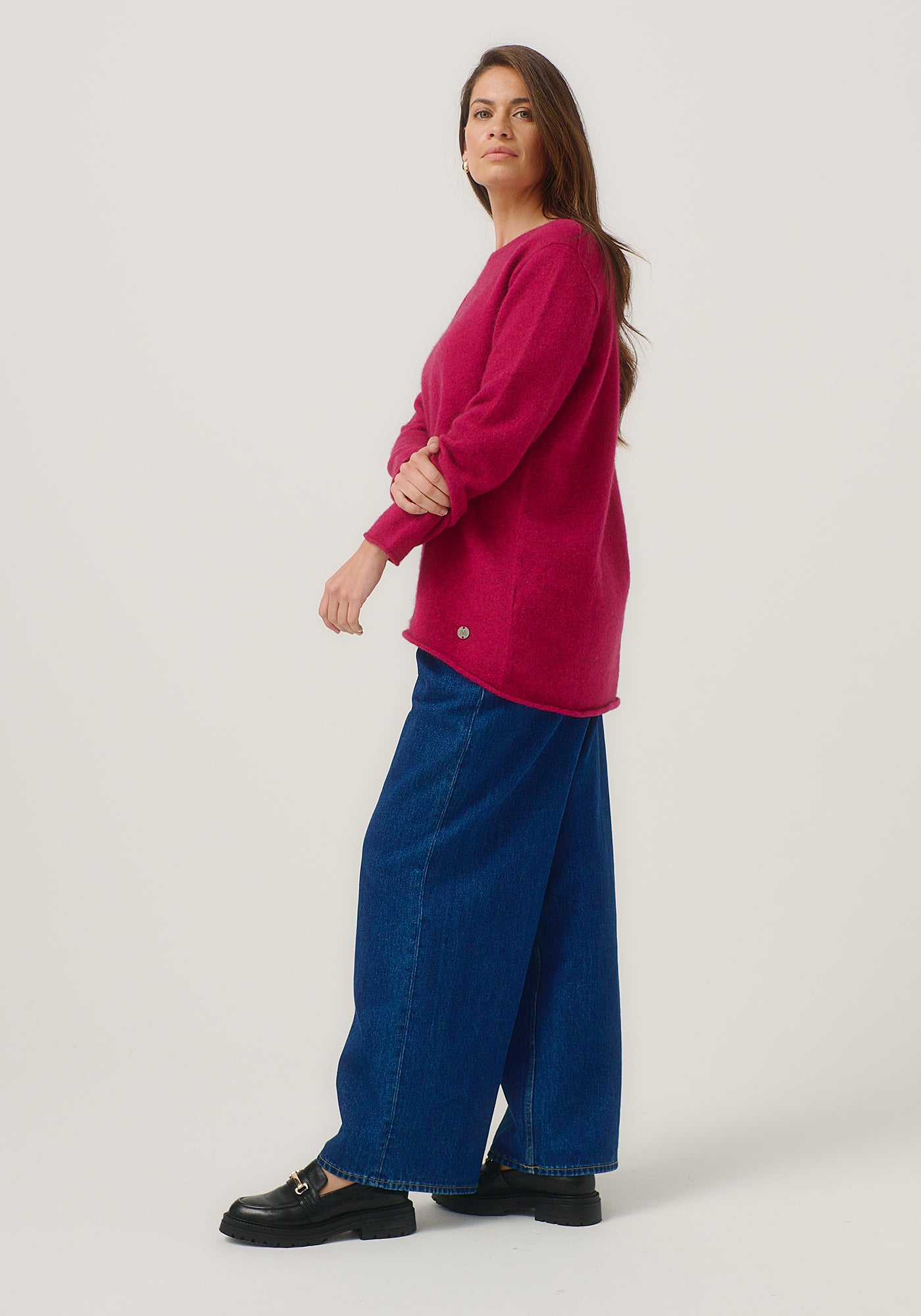 As its name suggests every wardrobe needs one of these. The ultimate in cosy comfort, the Essential will take you wherever you want to go. With a dipped back hem and crew neckline, it's a timeless silhouette you'll love. Pair it with the essential snood and - voila! You have a rollneck. It's finished off with Merinomink branding.
